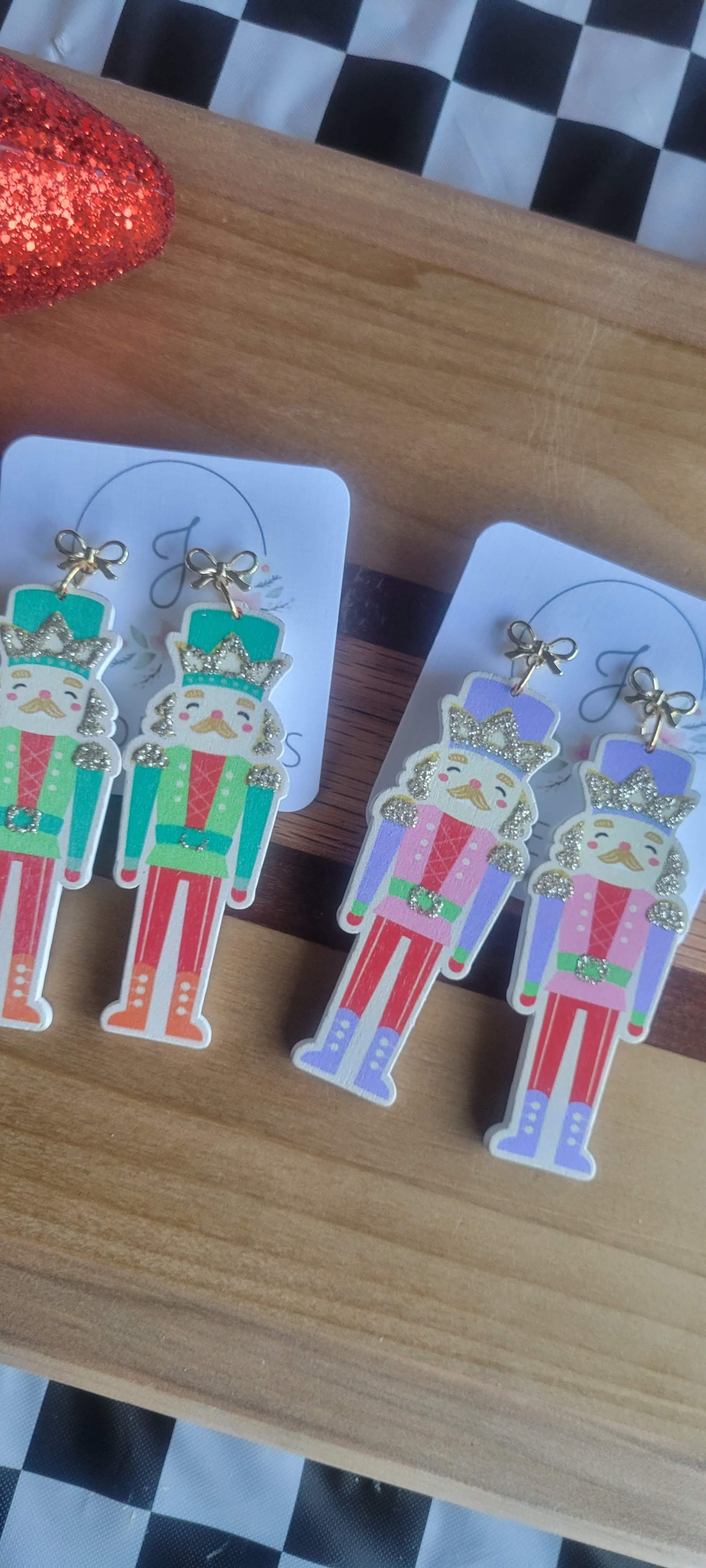 Hypoallergenic stainless steel post bows add festive cheer to out holiday nutcrackers.