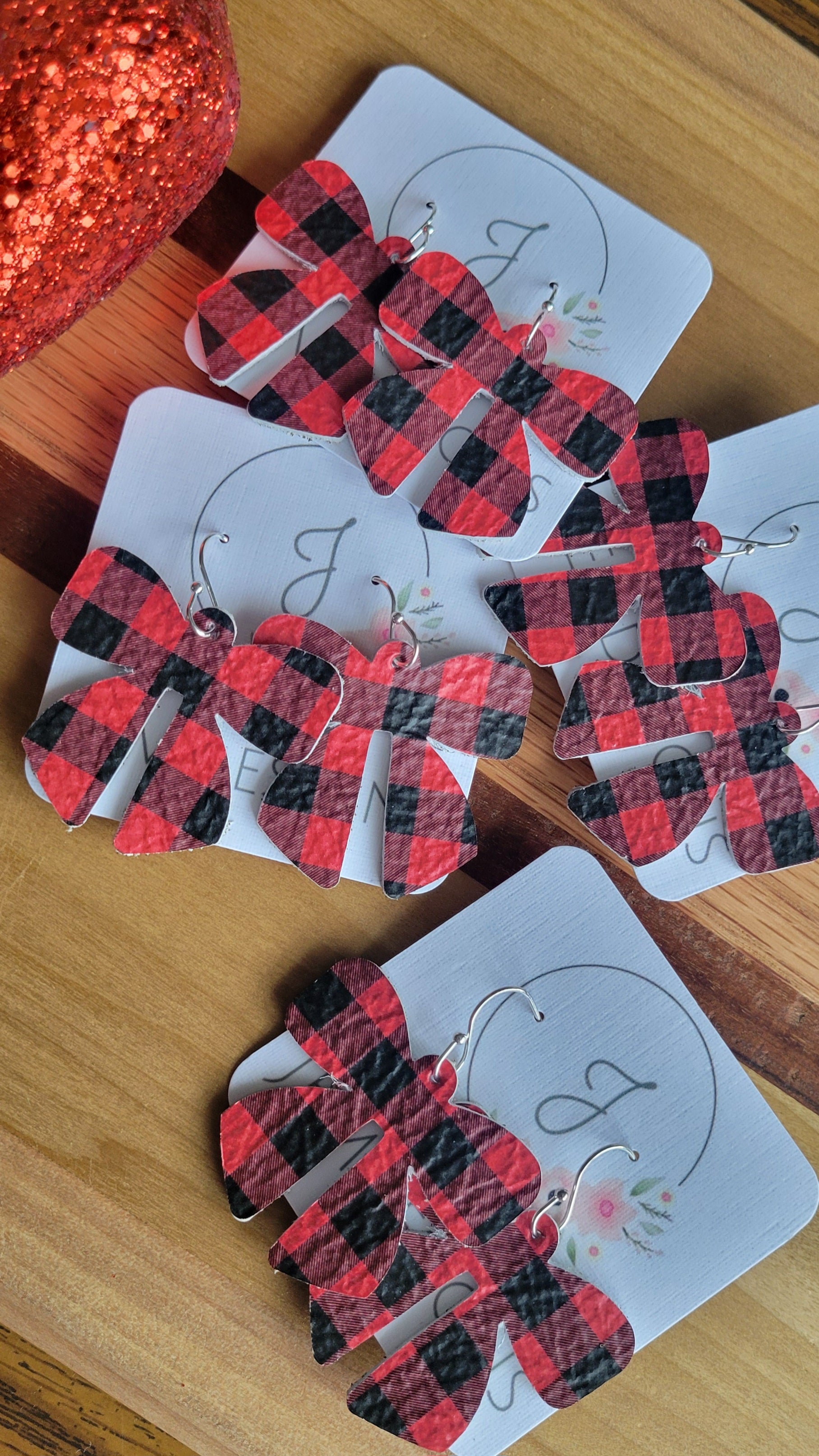 Our Buffalo Plaid Bow Earrings are perfect for.the holiday season. Made with genuine leather they are lightweight and are on hypoallergenic hooks.