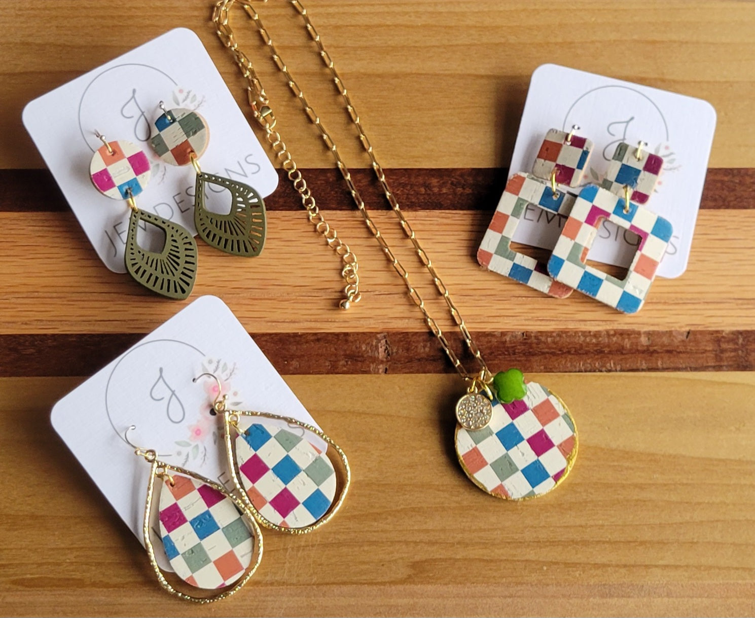Checkered Cork Necklace and Earrings