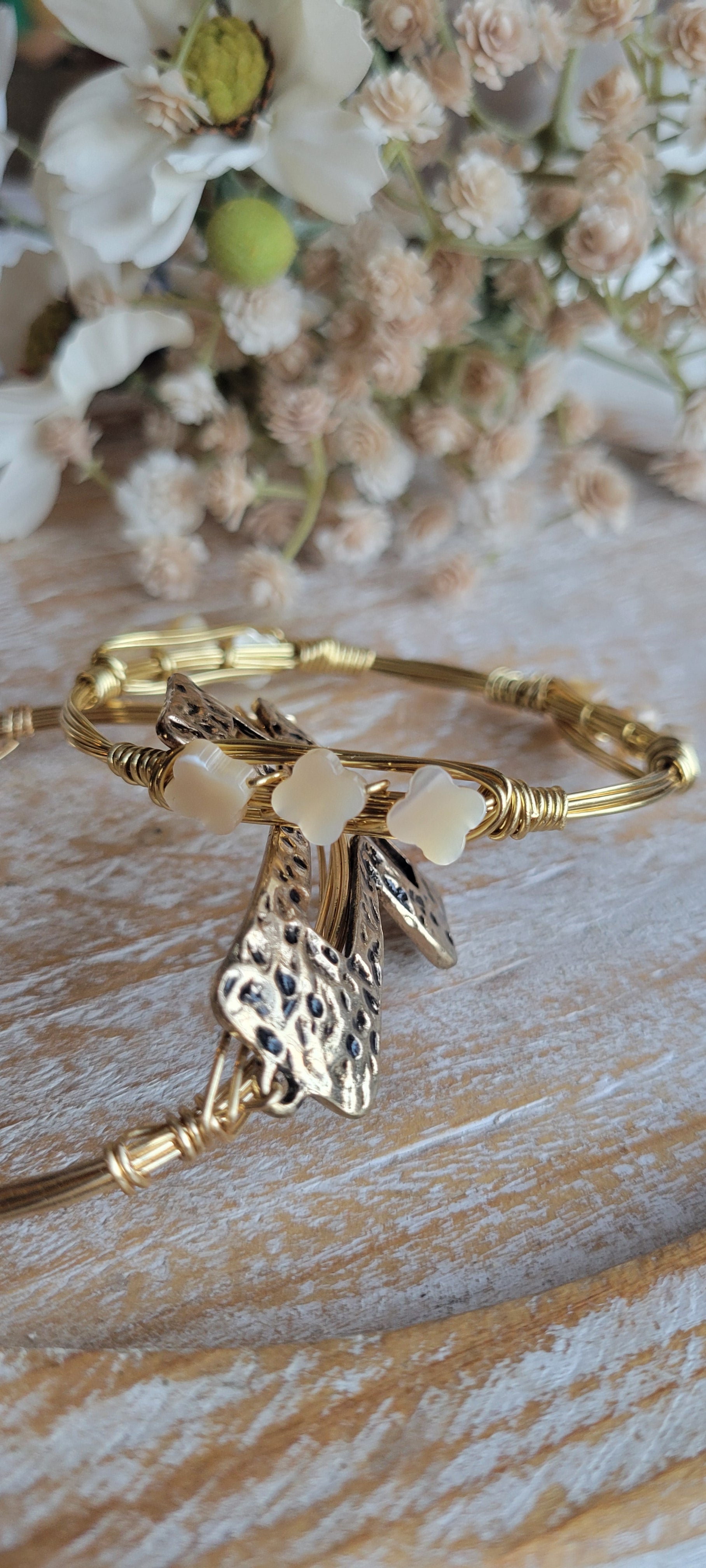 Elevate your everyday look with this unique, handmade gold-plated wire bangle. Centered with three captivating crystal charms, reflecting the artistry of handcrafted jewelry.