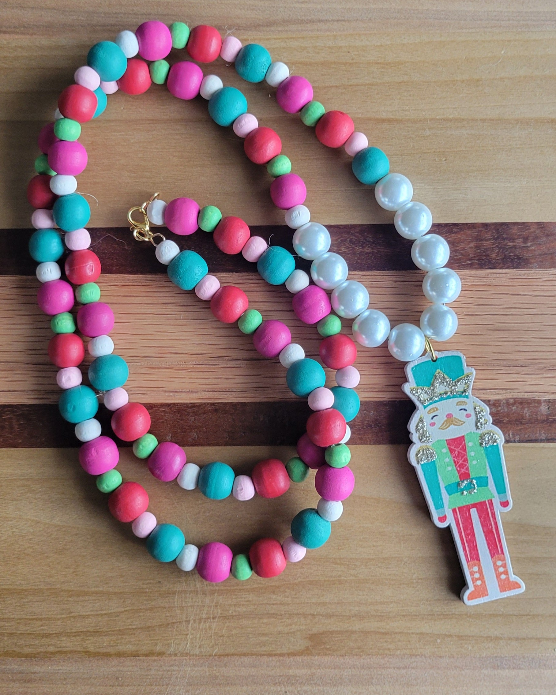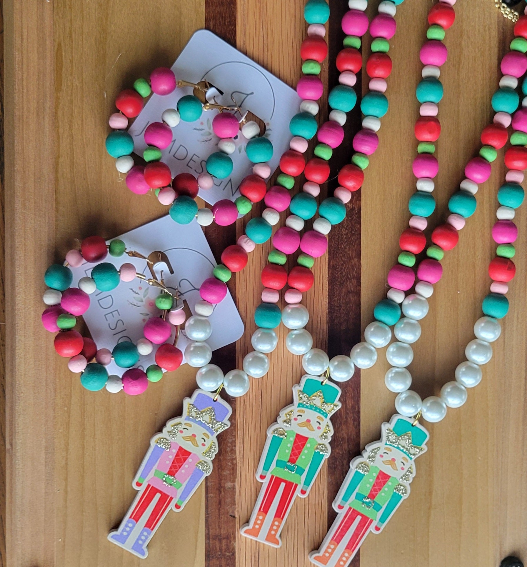 How cute are these?! Lightweight wooden nutcracker earrings and matching necklaces made with colorful wood and pearl beads β perfect for adding a little festive fun to your look! π All earrings are on hypoallergenic hooks so theyβre comfy and safe for sensitive ears. All necklaces have a clasp closure. The short necklaces have a chain extender.Β