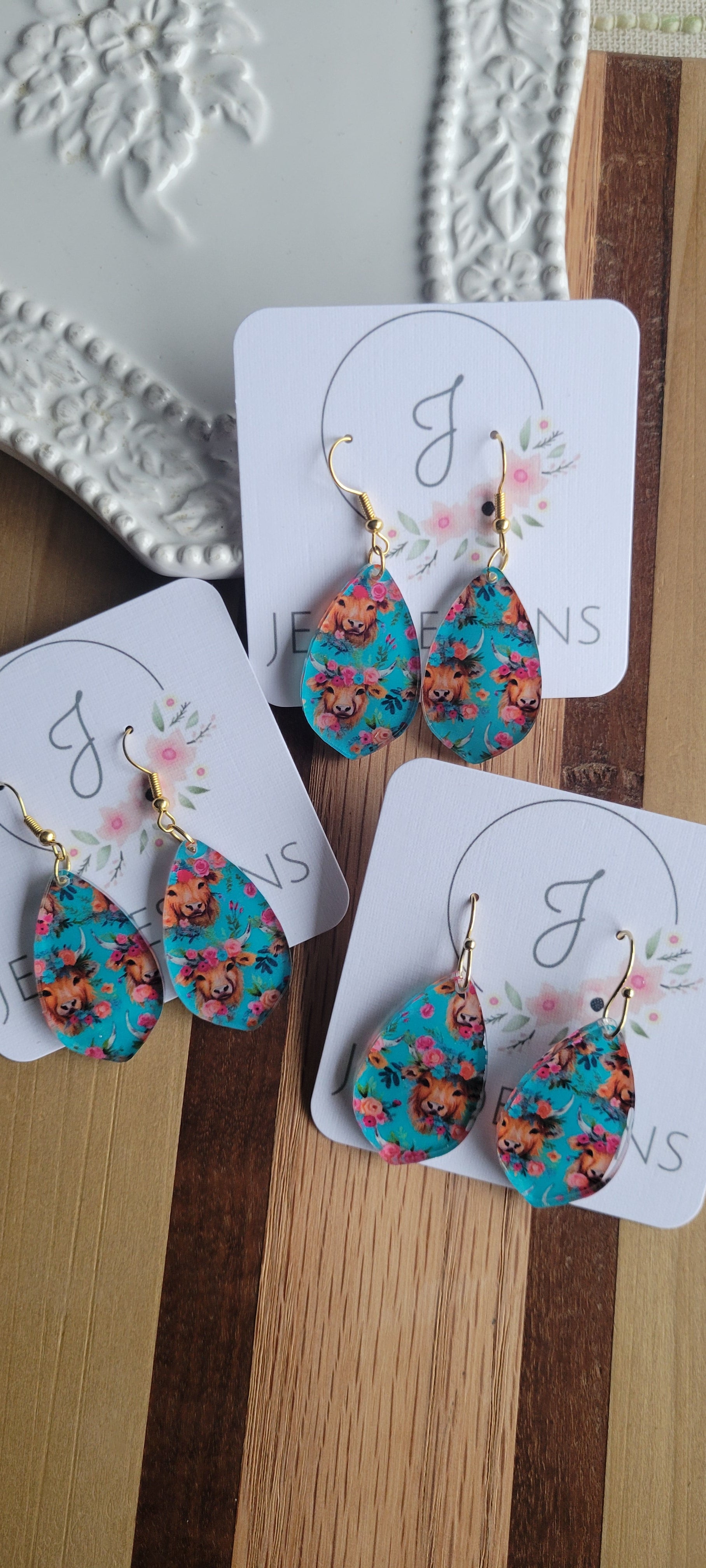 Our highland cow earrings are lightweight and on hypoallergenic stainless steel hooks.
