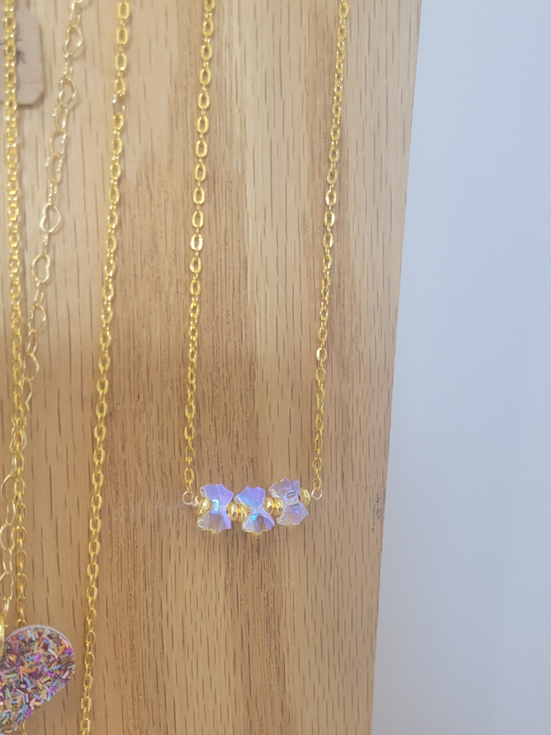 Beautiful crystal bows on gold filled chain with a clasp closure.